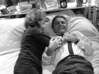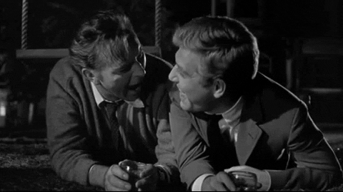 Джордж и Марта — большие дети. Они расхаживают пьяные по своему дому и скандалят. За них делается страшно, будто вот-вот придут их родители и накроют вечеринку в разгаре — настолько они выглядят детьми. Наверное, это от непосредственности Марты и от надутости Джорджа. Слишком непосредственности и слишком надутости. Марта Лиз Тейлор — сама отчётливость, сфотографированная молния, укол сетчатки — в каждом жесте, в каждом слове. Хочется сказать ей — "Только говори, говори что угодно, не останавливайся... И не уходи!" Глядя на них, сложно понять, как они оказались вместе, а в следующее мгновенье уже не понимаешь, как можно было допустить, что они не подходят друг другу. Также сложно понять и то, чего именно они пытаются добиться друг от друга: то ли любви и внимания, то ли войны и одиночества. И в этой пытке многократной рождается клинок булатный? Что же родится из этой серии приманок и отталкиваний? А пока зритель путается в чувствах и теряется в догадках, Джордж и Марта ждут гостей. Гостей, которых просил приласкать Папа.